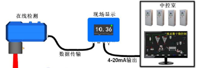 在線連續(xù)測量輸送帶上洗衣粉的水份含量,可以實時監(jiān)控洗衣粉水份含量的高低變化,水份儀可以輸出4-20ma信號到中控室,通過PLC或人工控制,將物料的水份控制在合理的要求范圍以內(nèi)。