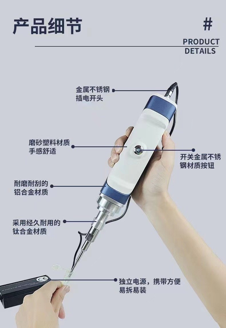3、機身材料選用的優質的鋁模搭配注塑模這樣的結構方式,這樣既保證了機器的牢固性和金屬質感又能體現整機的輕便和時尚,變幅桿采用鈦合金材料制作,具有強度高、聲速高,耐蝕性好、耐熱性高等特點,從而延長儀器的使用壽命;
