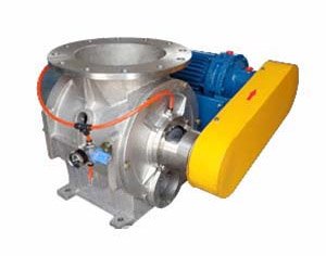 氣力輸送用不銹鋼旋轉閥是通過電機、減速機的傳動將一個帶有等分結構的葉輪在殼體內旋轉,從殼體上部料倉或給料裝置的物料填充在葉輪的型腔內,物料隨葉輪的旋轉到殼體的下部卸出。