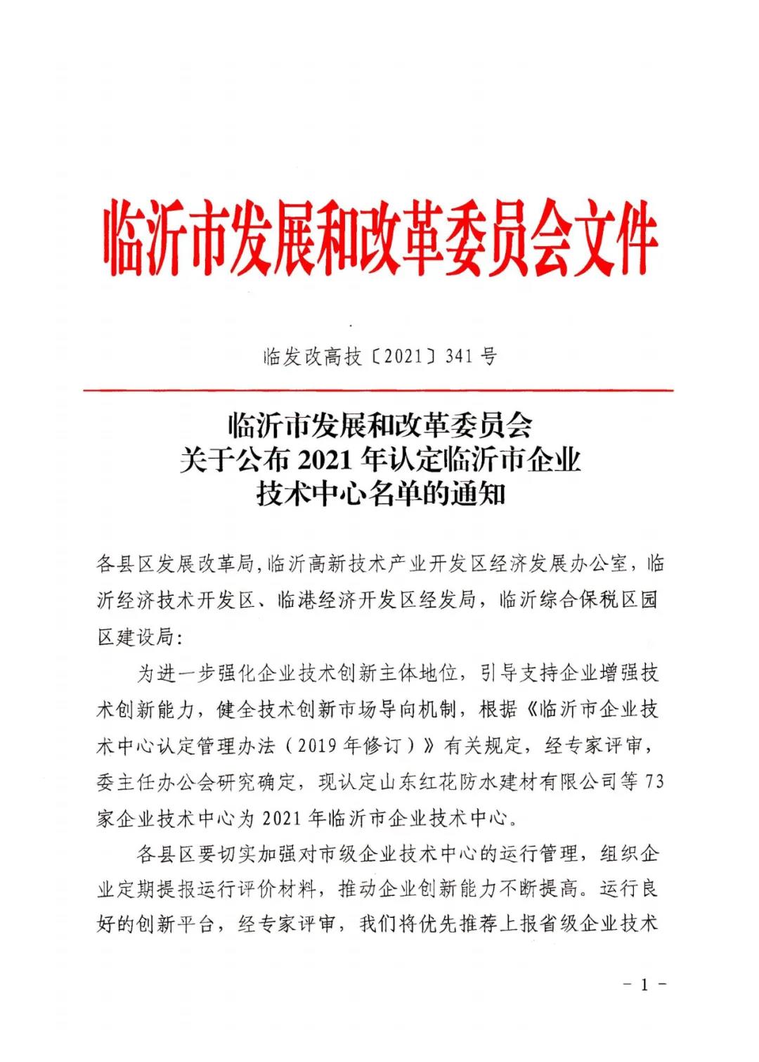 2021年益新科技喜獲臨沂市企業技術中心榮譽稱號!