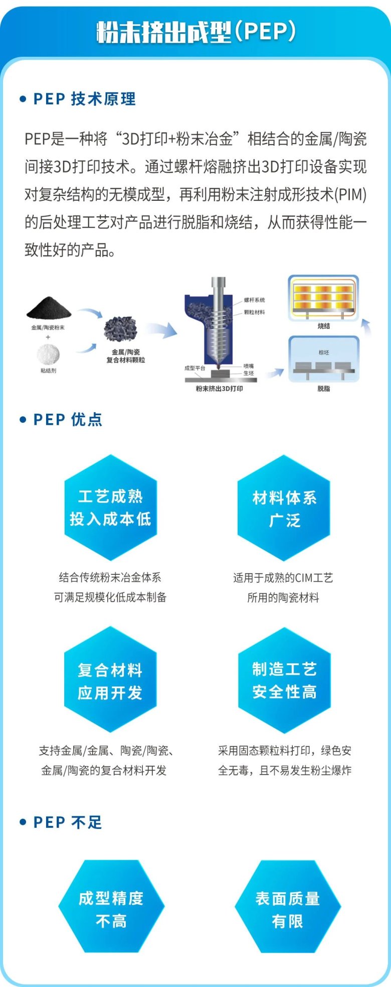 成型原理:PEP技術采用顆粒材料融熔擠出成型,而DIW技術采用膏狀漿料室溫擠出成型,兩者在成型原理上存在本質區別;