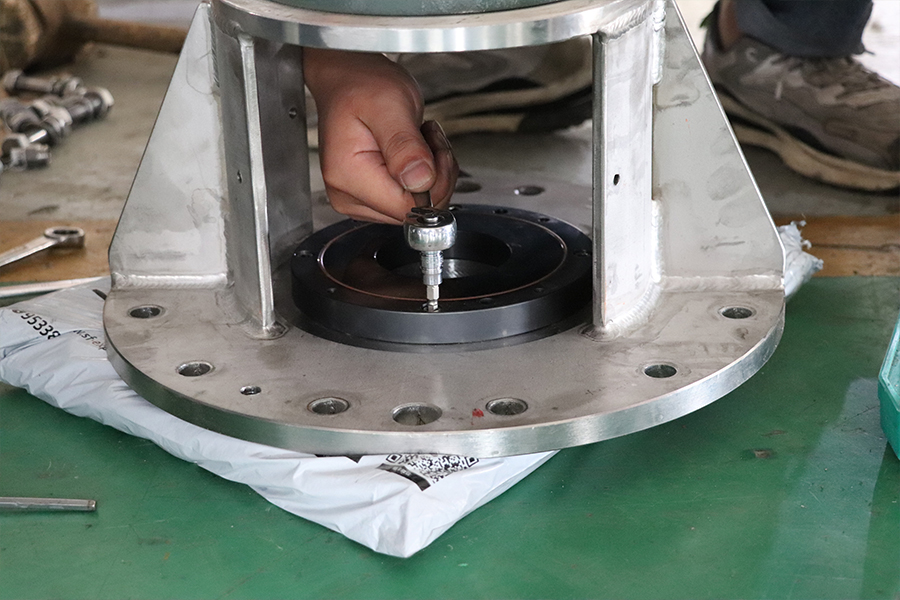 由于輸送機主軸、支撐座尚未完全固定,安裝團隊采用分步作業方式,確保軸封的正確安裝: