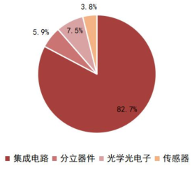 據(jù) WSTS 數(shù)據(jù),2022 年全球集成電路、分立器件、光學(xué)光電子和傳感器市場(chǎng)規(guī)模分別為4,799.88億美元、340.98 億美元。437.77 億美元和 222.62億美元, 在全球半導(dǎo)體行業(yè)占比分別為82.7%、5.9%、7.5%和3.8%。在上述半導(dǎo)體產(chǎn)品分布中, 集成電路是技術(shù)難度最高、 增速最快的細(xì)分產(chǎn)品, 是半導(dǎo)體行業(yè)最重要的構(gòu)成部分。