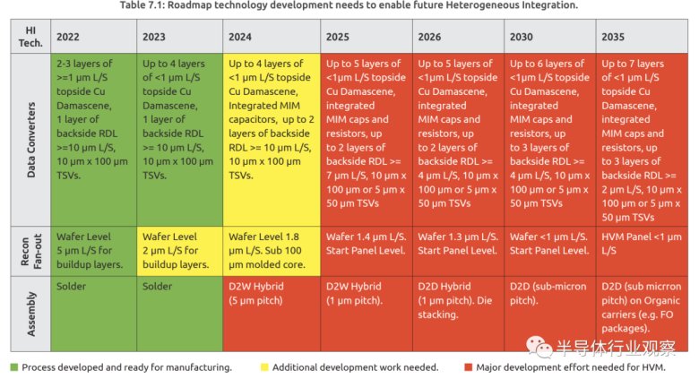 這些需求具體對應(yīng)到高級封裝的技術(shù)演進(jìn),MAPT在高級封裝章節(jié)提出了未來十年的技術(shù)演進(jìn)方向。