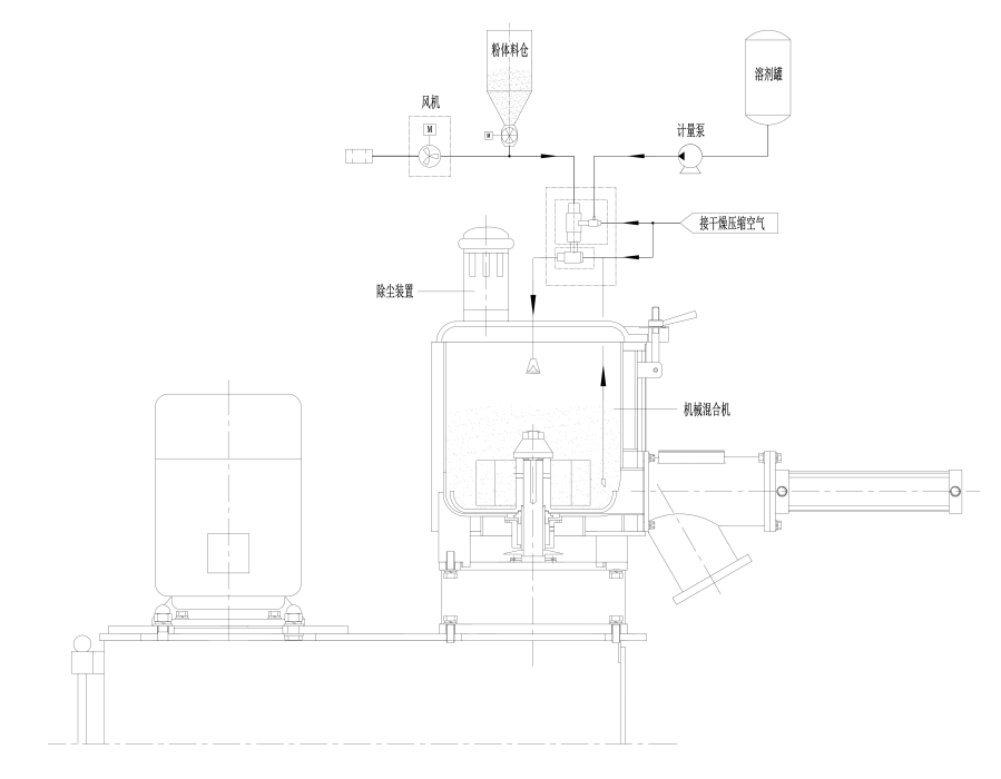 (1)采用霧化進(jìn)料,粉體和溶劑接觸均勻,減少機(jī)械攪拌強(qiáng)度;